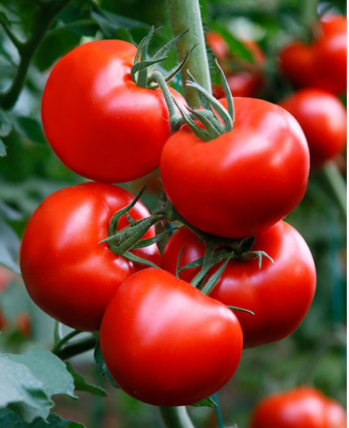 Beef tipi hibrit domates. Meyveler basık yuvarlak formda, 230–300 g ağırlığında, parlak kırmızı renkli,